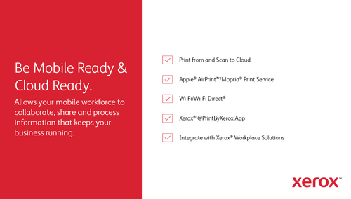 Uncompromising Productivity, Reliability and Security: Your work continues to demand more — greater mobility, better security, and simpler ways of getting more done. That’s why next-level capabilities come standard with the Xerox® VersaLink® B415 Multifunction Printer (MFP). Powered by advanced Xerox® ConnectKey® Technology, this modern multifunction printer is ready for anything you throw at it — today or tomorrow. Say Hello to More Ease: Easy-to-follow, step-by-step configuration options make setup a breeze, so you can get up to speed and back to work in minutes, not hours. The Xerox® Easy Assist App simplifies installation, monitoring and management of your MFP from the convenience of your mobile phone. Powering Productivity: The intuitive touch screen interface is your on-ramp to the ever-expanding Xerox App Gallery, home to a wide variety of apps to take your Workplace Assistant even further. This allows the B415 MFP to adjust to the needs of your organization, even the ones you don’t see coming. For example, the Easy Translator Service App can translate scanned documents into several different languages in a snap. Smart, Multi-Layered Security: Even security is simpler with the B415 MFP. Built-in features and comprehensive services that work hard to keep data and documents safe by preventing unauthorized access, detecting suspicious or malicious behavior and staying ahead of threats. Made for Modern, Mobile Work: You’re always on the go, and your Workplace Assistant can help you stay that way. Work when, where and how you want with access to your favorite cloud storage platforms, including Google Drive™, Microsoft® OneDrive® and DropBox™, as well as additional options through the Xerox App Gallery. Wireless flexibility makes it easy to print and stay secure and connected no matter what.